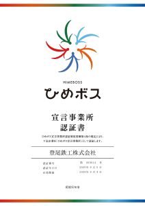この度、登尾鉄工株式会社は、ひめボス宣言事業所に認証されました。