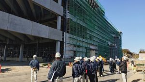 研修旅行で、岡山県のJFEスチール西日本製作所の視察と現在建設中の現場を見学に行きました。